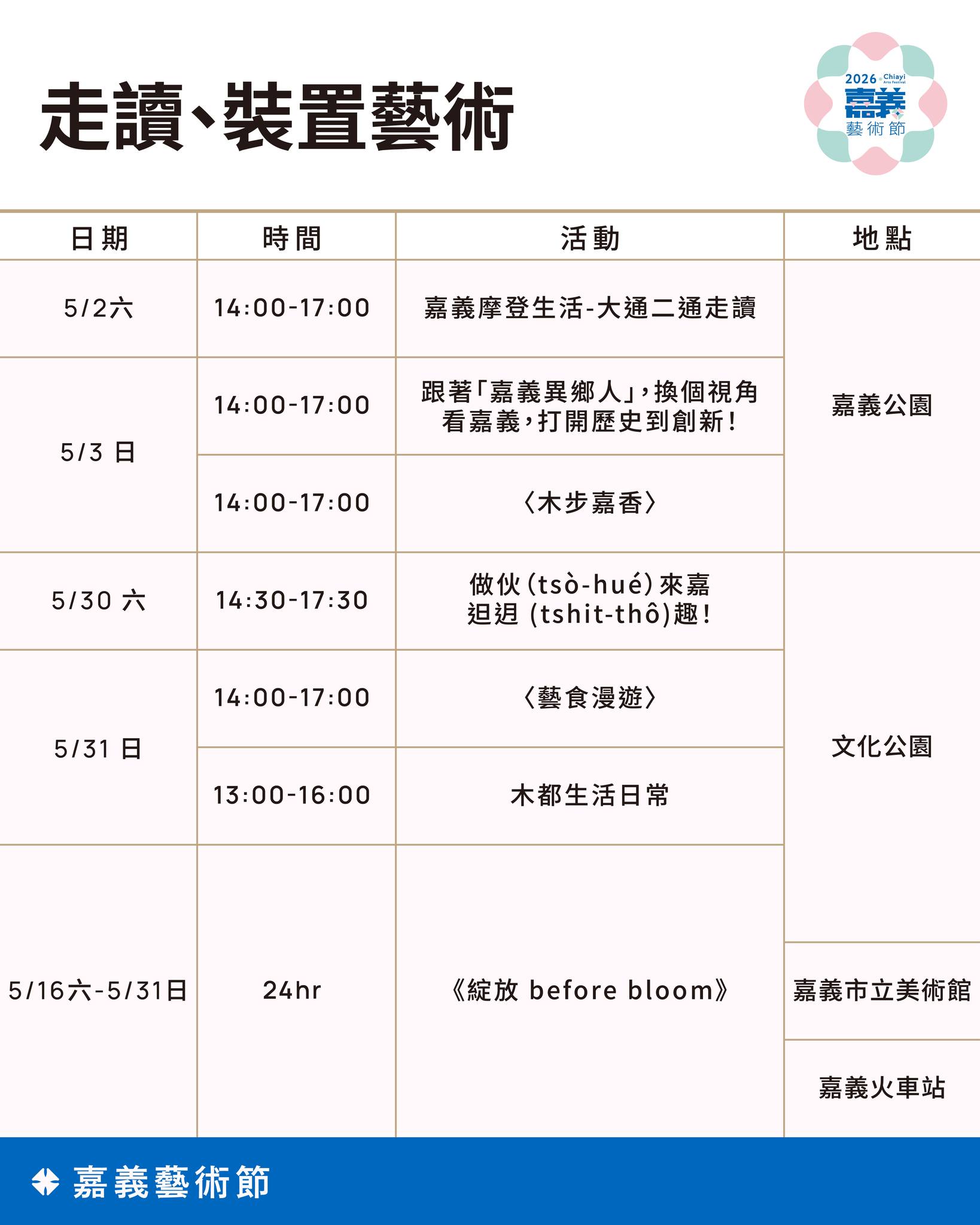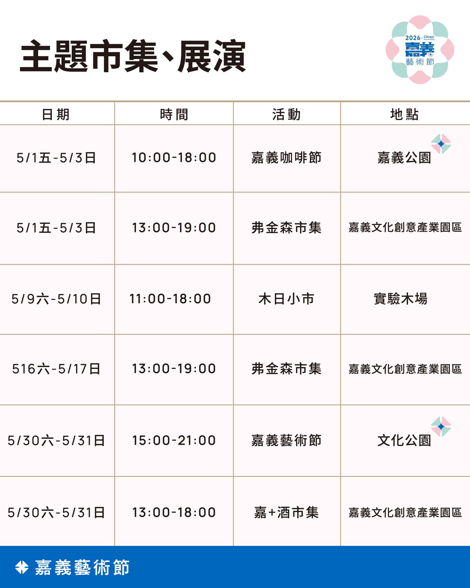 首週由嘉義咖啡節揭開序幕,超過150間品牌參與,從一杯咖啡開始,揭開藝術節序幕,還有多場主題市集、走讀與各式演出,從場館到街區,讓藝術走進日常生活。