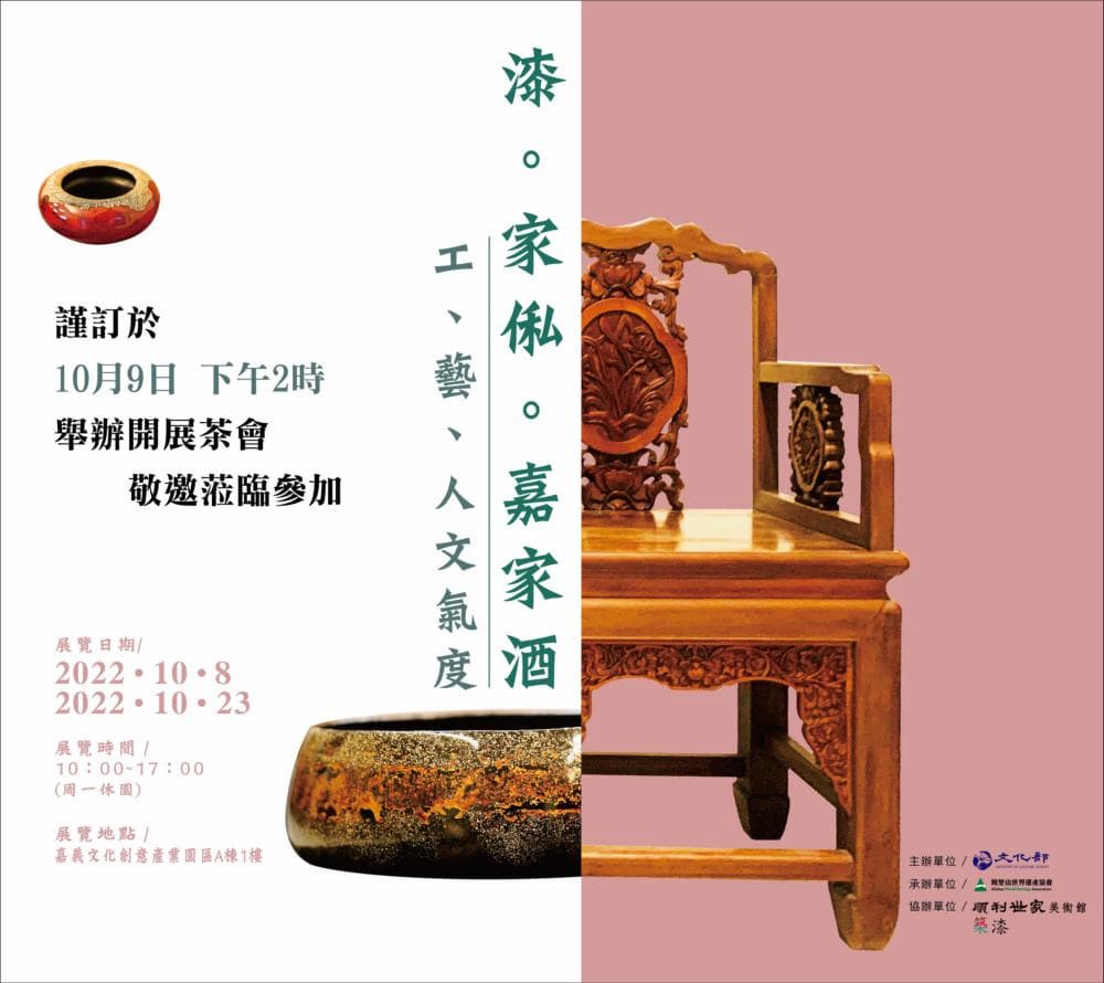 《漆。家俬。嘉家酒》特展,謹訂於10/9(日)下午14:00舉辦開展茶會,歡迎蒞臨參加。
