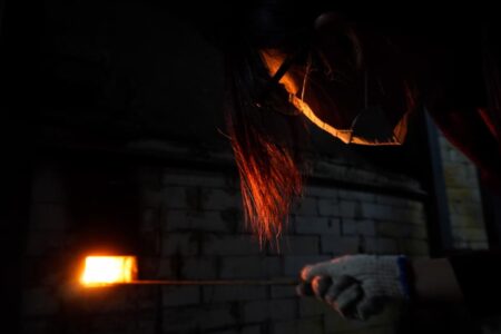 ![]() 陳芊瑑《火之舞》 原本素昧平生的人們,彼此相互扶持間醞釀出火的默契。 柴燒窯中投柴口冒出熊熊烈火,在習陶的夥伴們手中慢慢升溫至一千多度, 需要隨時注意投入適當柴火維持窯溫,確保落灰下的天然釉藥能附著在每一個陶作坯體上,形成美麗獨特的火紋,與火共舞守護著我們的創作。 |