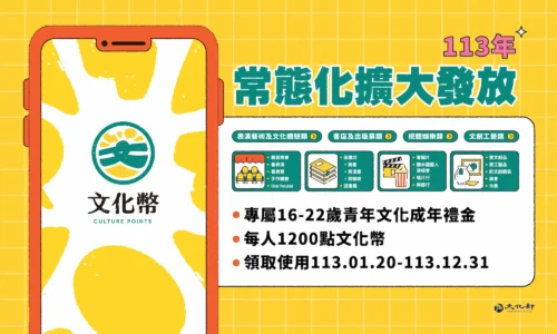 ▸文化幣 ➫ 113年度成年禮金文化幣有效日期至113年12月31日(含)止
